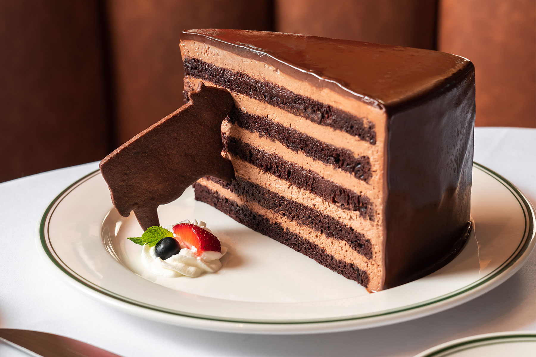 専用の誕生日プレートのご用意はございませんが、事前にご相談いただければ、名物の特大チョコレートケーキを少しだけお取り分けし、メッセージを添えてご提供することが可能です。